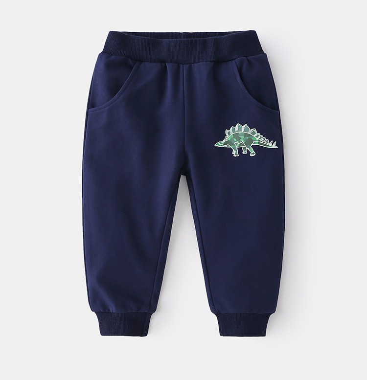 The set features a green, camouflage-style pattern with dinosaur graphics on both the top and the knees of the pants.
